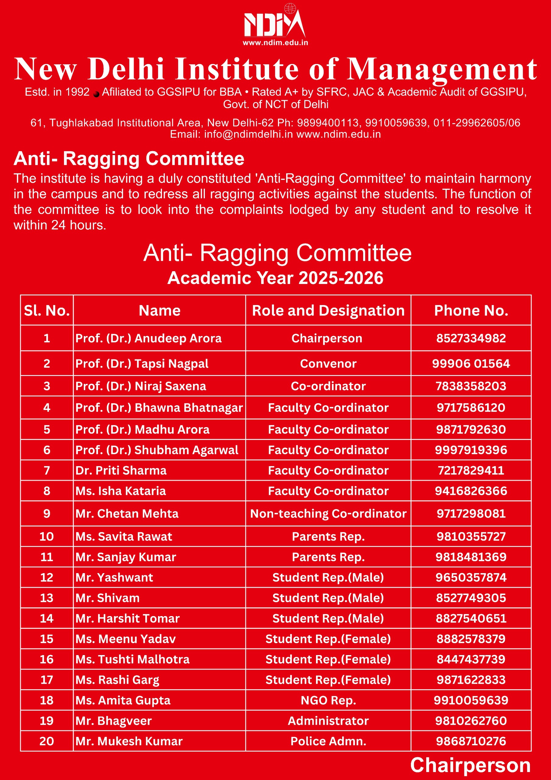 Anti Ragging Committee